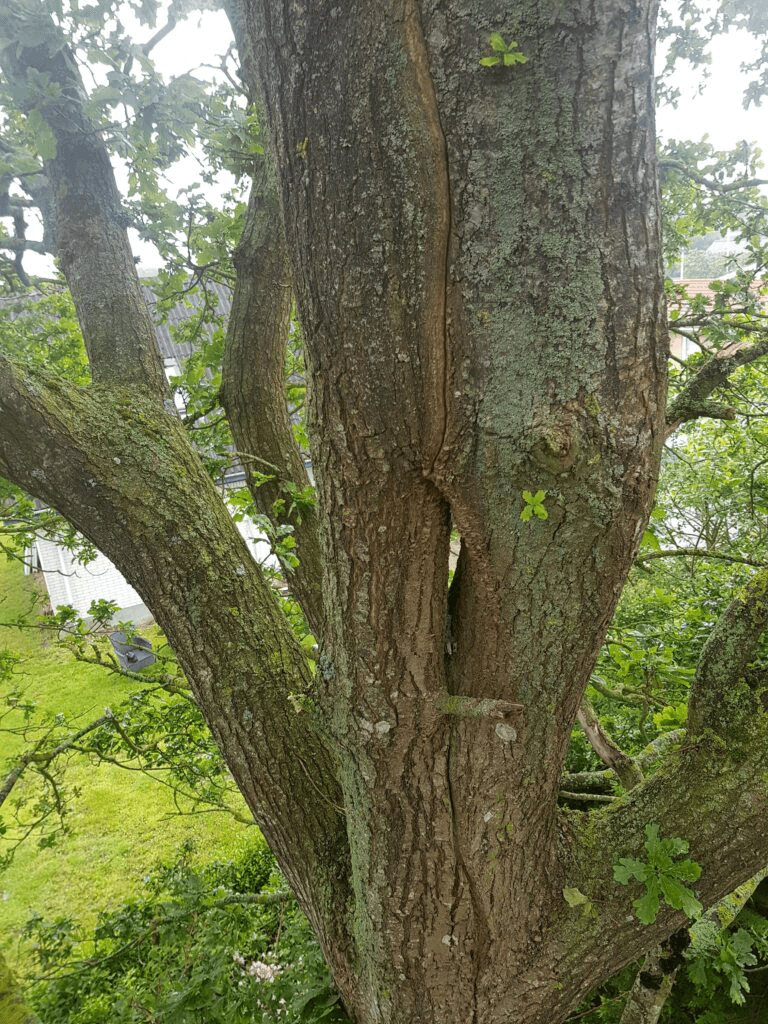 Grene som disse er ofte startet ud som vertikale grene, men som de bliver større og tungere, bliver de mere horisontale og kan forårsage voldsom stress på træet.