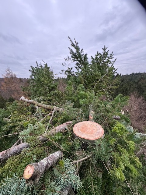 👉 Træerne blev skåret af lige over en kraftig grenkrans, som forhåbentlig kan danne en base for en ørneder i løbet af de næste par år.